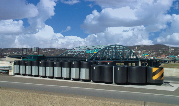 The REACT 350® Wide is a redirective, non-gating crash cushion that consists of High Molecular Weight/High Density Polyethylene (HMW/HDPE) cylinders. It is tested to NCHRP Report 350 Test Level 1, Test Level 2, and Test Level 3.